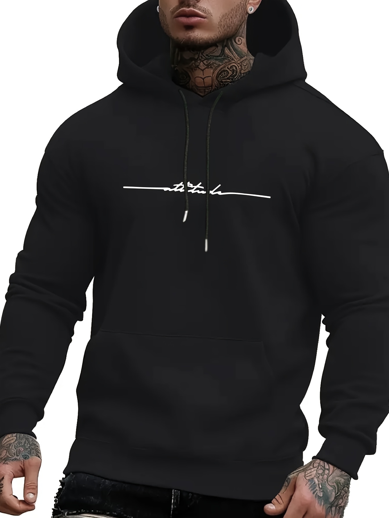 • Seasonal Staple, Men's Casual Hoodie with Geometric Print - Long Sleeve, Kangaroo Pocket, Polyester Blend, Machine Washable, PLUS SIZE