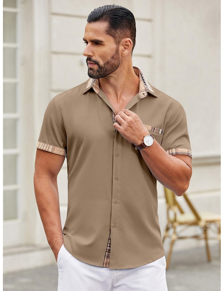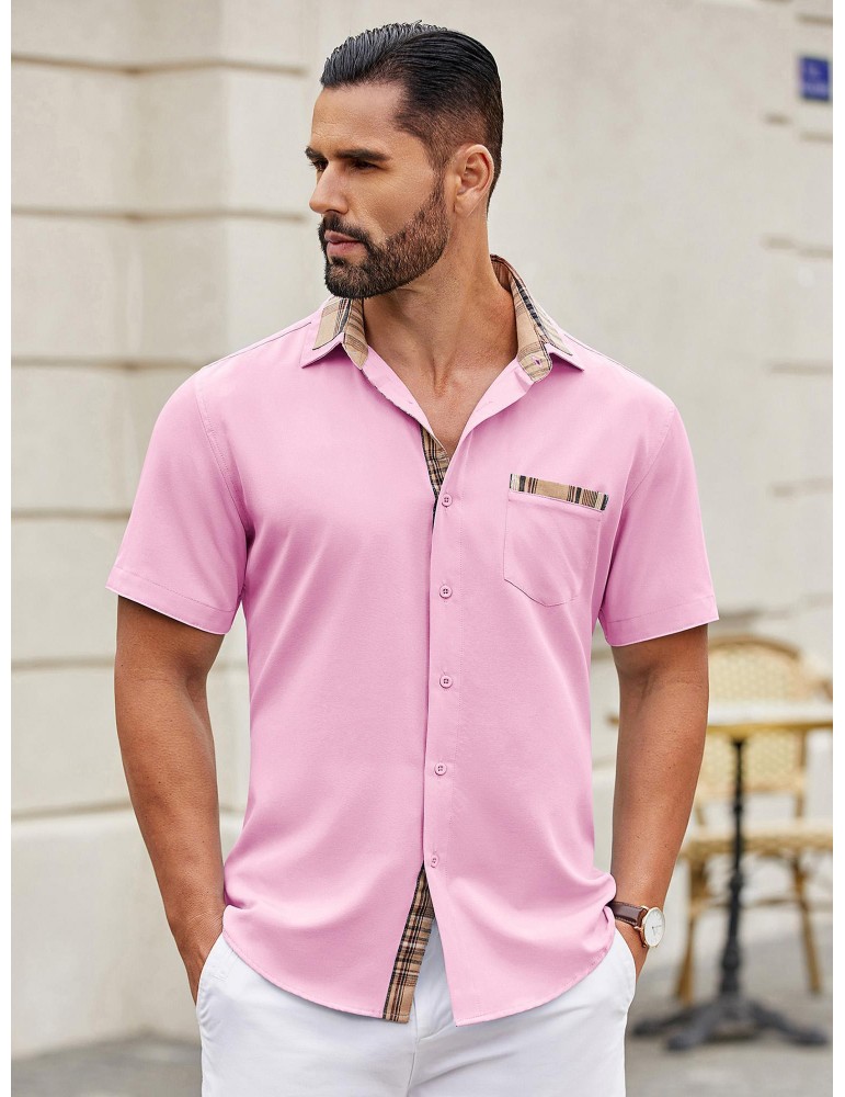 Men's Casual Button Down Shirts Stretch Short Sleeve Business Dress Shirt with Pocket