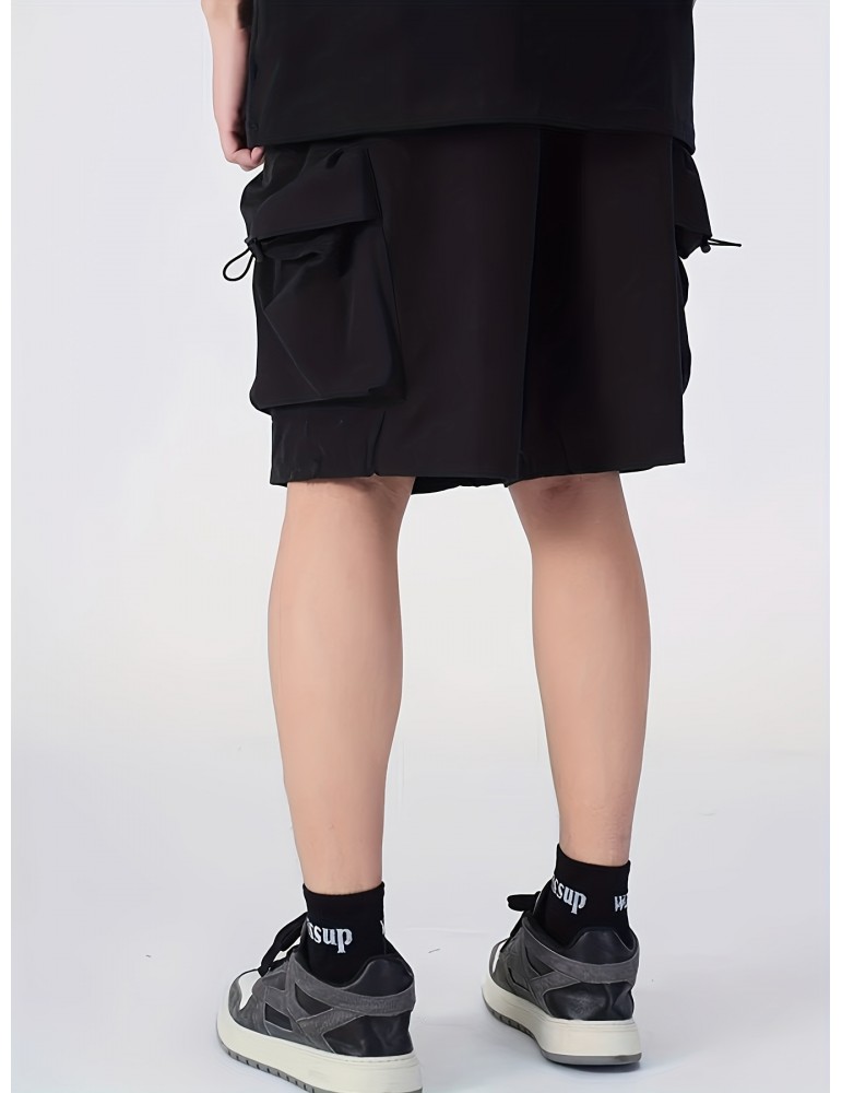 • Men's Loose Solid Shorts With Multi Pockets, Casual Elastic Waist Drawstring Shorts For Summer