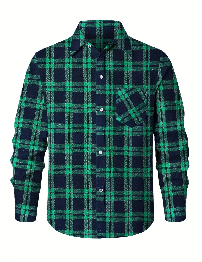 • Plus Size Men's Casual Long Sleeve Button Down Shirt Fashion Classic Buffalo Plaid Flannel Top