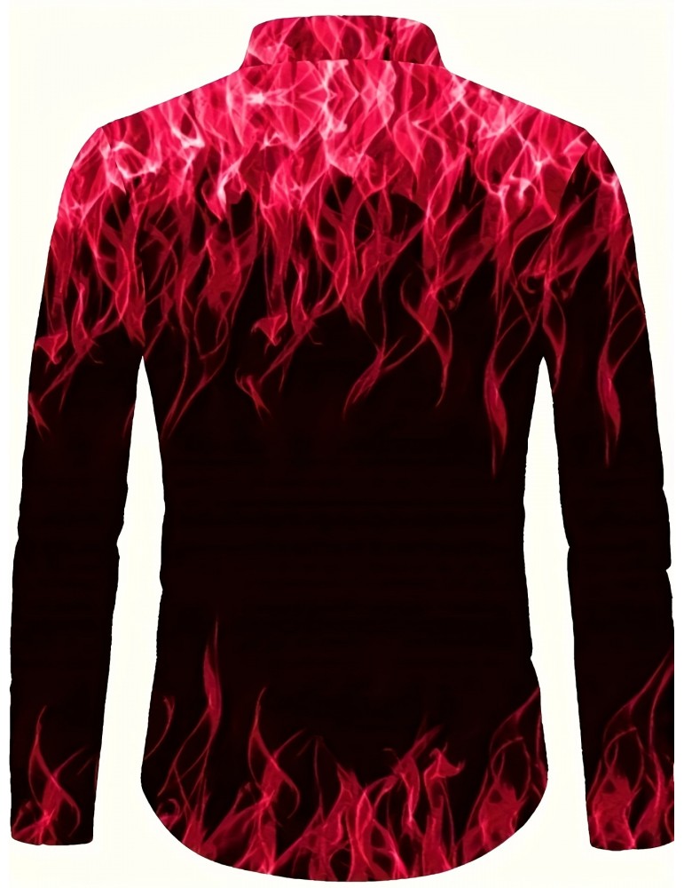• Plus Size Men's Long Sleeve Shirt With Flame Print, Comfortable Breathable And Versatile For Spring/Fall