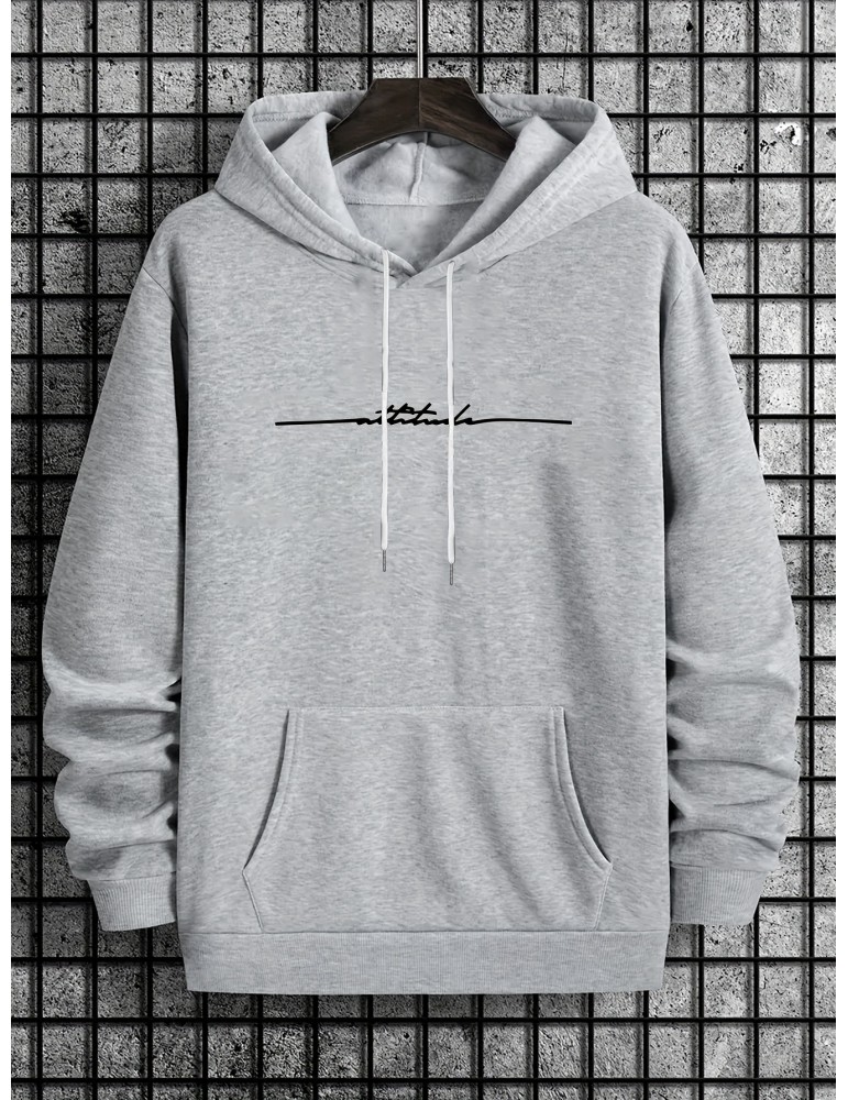 • Seasonal Staple, Men's Casual Hoodie with Geometric Print - Long Sleeve, Kangaroo Pocket, Polyester Blend, Machine Washable, PLUS SIZE